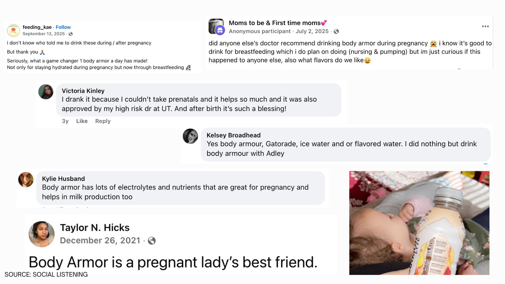 Breastfeeding Facebook groups frequently cite BODYARMOR as a lifesaving remedy for nutrition while nursing. It’s such an open secret that many doctors even recommend it!